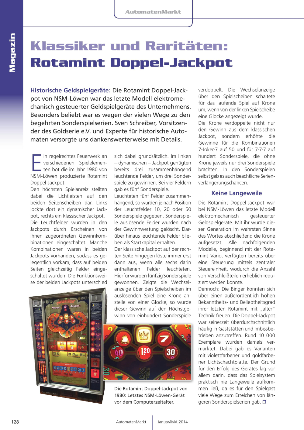 im Fachmagazin AutomatenMarkt, Ausgabe 01/20124