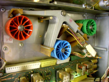 Bedingt durch die Gleichheit des Spielsystems im Vergleich mit der Rotamint Gold & Silber war dies eigentlich auch schon alles zur Rotamint Exquisit. Für den technisch interessierten Leser findet sich in diesem Gerät jedoch noch eine Änderung im Sinne des technischen Fortschrittes: Die metallenen Gewinnabfragebügel der neuen Gewinnabfragetechnik wurden durch solche aus Kunststoff ersetzt. Da diese natürlich keinen elektrischen Strom leiten, fallen diese Bügel bei einem Gewinn nicht mehr direkt auf die Kontaktplatine, sondern sie erlauben kleinen Kontaktzungen (ähnl. wie die Nockenkontakte, nur kleiner) das Passieren des Weges zur Kontaktplatine. Dieses erwies sich als wesentlich betriebsicherer. Man kommt bei Instandsetzungsarbeiten besser an die betroffen Teile, ohne erst die Spielscheiben entfernen zu müssen, auch das erwähnte verharzen der Mechanik tritt so gut wie gar nicht mehr auf. Einziger Nachteil: Einmal ist mir bei Einstellungsarbeiten an der mechanischen Nocke der (nun aus Plastik bestehende...) Abtastarm, vermutlich wegen Materialermüdung durchgebrochen - Künstlerpech. Reparaturversuche mit Sekundenkleber scheiterten, der Austausch des Teiles war unumgänglich. Das ist dann wieder einer der Momente wo man eine Antwort auf die Frage findet, welche man sich als Sammler oft selbst stellt: "Was will ich mit den ganzen Schrott, den Altgeräten, Schlachtgeräten und "Leichen"?!? Die stehen hier doch nur herum und nehmen mir den Platz weg..."