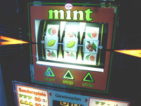 drei Orangen erscheinen aber häufiger als bei der Mint. Unterhalb des Sonderspielezählwerkes ist der
