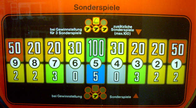 Bei der Wechselanzeige für die Anzahl von Sonderspielen auf der rechten Seitenscheibe waren die drei "fünften Felder" mit anderen Werten belegt, als bei der Goldene 7. Sie sind von links nach rechts mit den Werten 10, 50 und 10, anstelle von 10, 30 und 20 bestückt. Dadurch steigt die durchschnittliche Anzahl der Sonderspiele für diese Kombination geringfügig auf 10,7 Spiele.