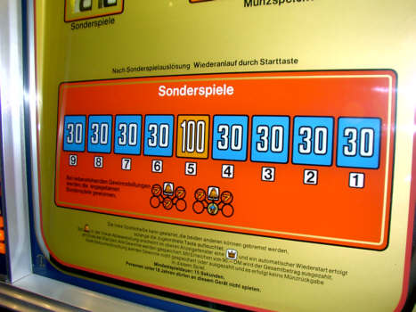 Dafür gibt es dann aber auch garantiert 50 Sonderspiele. Wenn im auslösenden Spiel auf der linken Spielscheibe eine Glocke erschien und somit die Krone auf der Wechselanzeige sichtbar wird, so gibt es sogar eine 100er-Serie.ff