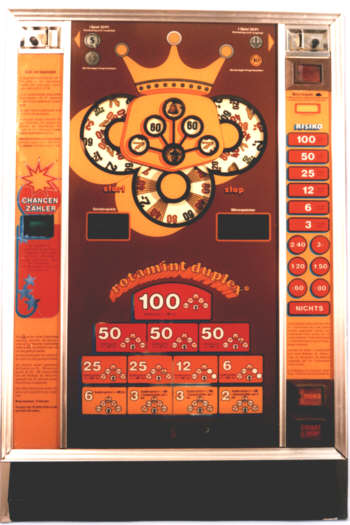 Als zweites elektronisch gesteuertes Rotamint-Gerät erschien ebenfalls im Jahr 1981 die Rotamint Duplex. Wieder wie gewohnt, "Rotamint-typisch" mit drei Spielscheiben und einer Wechselanzeige (wie bereits bei der Rotamint Vario erwähnt als "steppende" Spielscheibe). Es handelt sich hierbei um die erste Rotamint mit Risikoleiter. Die Risikoleiter befindet sich auf der rechten Seitenscheibe. Sie beginnt unten im Geldgewinnbereich mit zwei parallel verlaufenden Leisten, ausgehend von den Feldern 60 und 80 Pf, und wird im Sonderspielbereich als eine Leiter bis zur 100er-Serie zusammengefasst. Geldgewinne in Sonderspielen lassen sich nicht riskieren. Der Spielablauf der Duplex wird akustisch insbesondere im Gewinnfall durch verschiedene Melodien untermalt und es werden im Gegensatz zur Vario nicht nur vereinzelte Töne oder kürzere Tonfolgen erzeugt.![]()