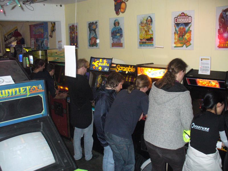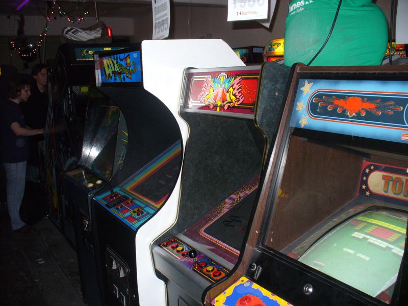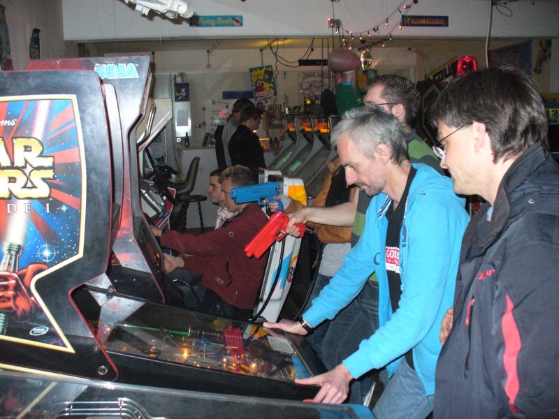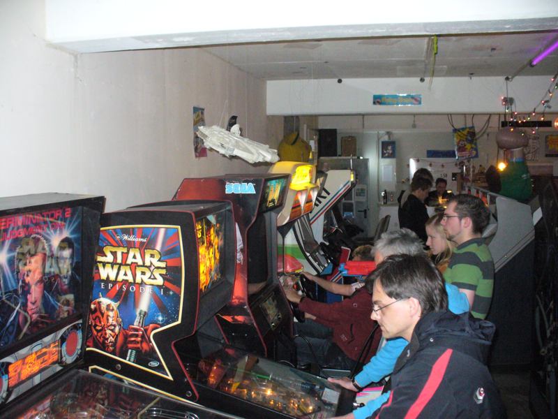 Nach der MV waren wir in Karlsruhe bei Retrogames e.V., die Goldserie etwas wesentliches voraus haben: Eigene Räumlichkeiten in einem ehemaligen Fabrikgebäude. Vollgestopft mit Videospielen aus allen Epochen und Flippern hatten wir viel Spass. Allerdings war die 80er-Jahre Musik, die in Discolautstärke aus Lautsprechern schallte, viel zu laut, so dass man sich weder unterhalten noch die Töne der bespielten Geräte hören konnte. Das machen wir besser, wenn wir mal eigene Räume beziehen!