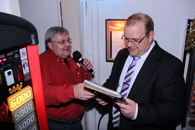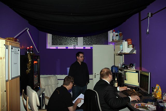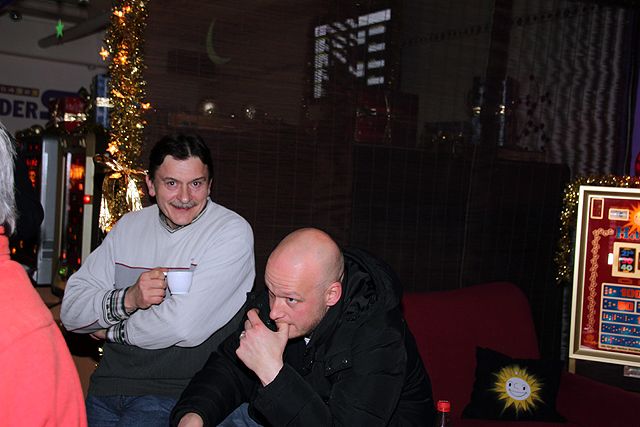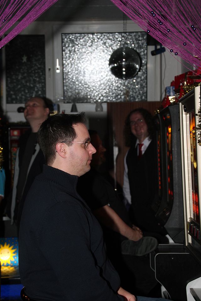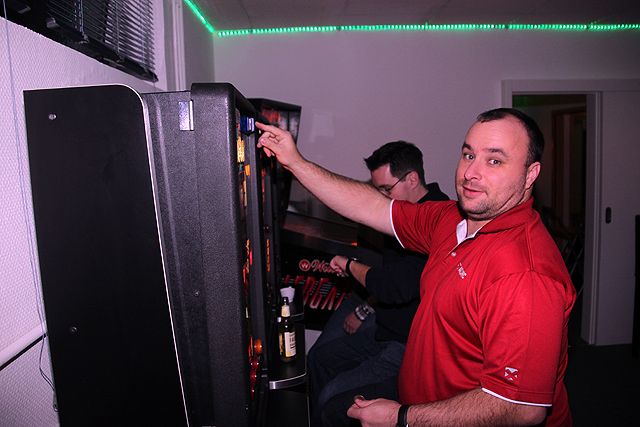 Ganz klammheimlich wurden bei der Weihnachtsfeier auch die letzten neuen Räumlichkeiten des SonderSpiels eröffnet. Im Oktober haben die Mitglieder des Team SonderSpiel zwei weitere Räume für Geldspielgeräte angemietet, die kurz vor der Weihnachtsfeier fertiggestellt werden konnten. Der ein oder andere hatte hinter der verschlossenen Tür schon Animationsmelodien der dort hängenden Geldspielgeräte vernommen, aber niemand traute sich, die Tür zu den neuen Räumen zu öffnen. Schließlich öffnete Chris die Tür, ohne etwas zu sagen, bis dann endlich jemand mitbekam, dass es wieder etwas Neues gab im SonderSpiel. Als Esteka sich in die neuen Räume verirrte, war er ganz verwirrt. Er ging durch die Tür und war im Glauben, im SonderSpiel Next Generation gelandet zu sein und fragte sich, wie er denn da nun hingekommen sei, denn das Next Generation liegt doch eigentlich auf der anderen Seite des SonderSpiels. Es dauerte noch einen Moment, bis er dann begriffen hatte, dass es sich um Räume handelte, die er noch gar nicht kannte. Ihm war zum Glück bei der Vorbereitung des Turniers auch nicht aufgefallen, wie viele Geräte er zur Auswahl hatte, so dass die Überraschung dann doch gelungen war.