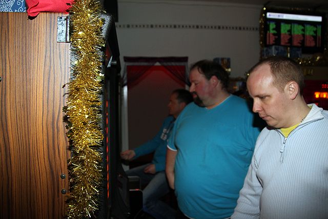 Nach dem Bingospiel ging es dann in die erste Qualifikationsrunde des Weihnachtsturniers. Wie immer ein spannender Moment. Mit dem Ertönen der Klingel wurden die Münzen in die Münzschlitze der Geräte geworfen, und jeder hoffte, die Qualifikationsrunden zu überstehen.