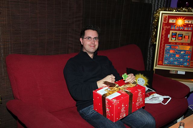 Nach dem Finale wurden die Geschenke verteilt, über die sich jeder freute. Keiner musste mit leeren Händen nach Hause gehen, denn neben den Hauptpreisen für die Turniergewinner gab es für jeden noch Trostpreise. Die Geschenke waren zum größten Teil von den Geräteherstellern gestiftet und, wie oben schon erwähnt, von Sven und Chris in wochenlanger Arbeit liebevoll verpackt worden. Für diese Mühen bekamen die beiden als kleine Anerkennung einen Gutschein für die Philharmonie, da sie auf einen Philharmoniebesuch verzichtet hatten, um zur Weihnachtsfeier kommen zu können.
