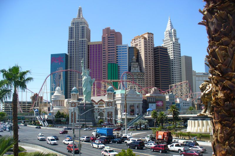 In Vegas stehen für den Tourismus ca. 150.000 Betten zur Verfügung, die sich überwiegend am sogenannten "Strip" wiederfinden, einer bis zu zehnspurigen Hauptstrasse mitten durch die Stadt. Nur die zentralen 4.2km davon sind sehenswert. Die grössten Hotels der Welt mit jeweils tausenden Zimmern stehen Spalier. Oft sind es nicht einfach nur Gebäude, sondern thematisierte Ressorts mit mehreren Türmen, Einkaufszentren, Casinos, Wellness und riesigen Außenanlagen. Neben Ägypthen kann man fussläufig New York, Paris, Venedig und das alte Rom besuchen. Der eigentliche Kern von Las Vegas um die Freemont Street ist mehrere Kilometer entfernt und verkam zusehens, ist aber in den letzten Jahren durch erhebliche Investitionen, z.B. eine riesige Videoleindwandüberdachung, wieder attraktiv geworden.