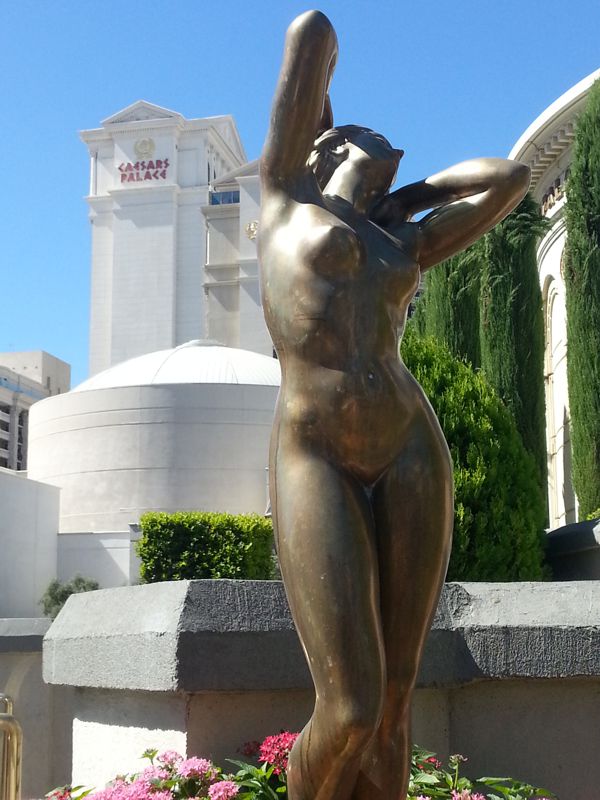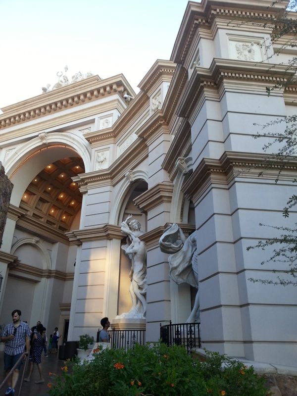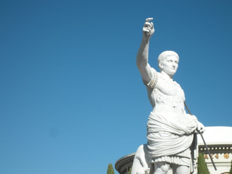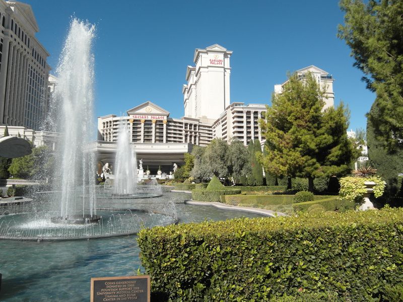 Wieder gegenüber eines der edelsten Häuser der Stand, das imposante Caesars Palace mit mehreren schlanken hohen Hoteltürmen und einer imposanten Außenanlage im altrömischen Stil.