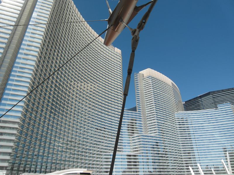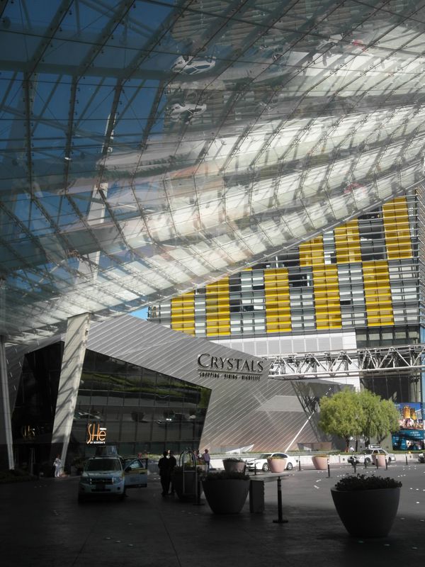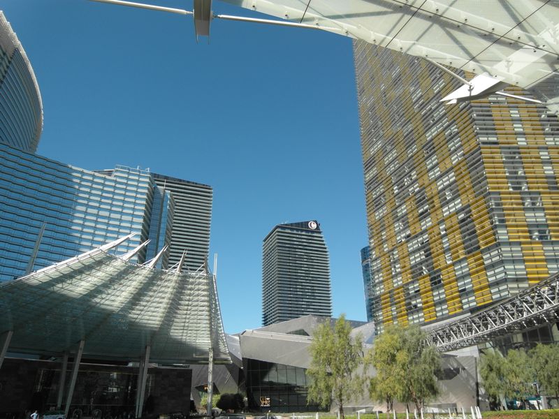 Anschließend folgen die futuristischen Cosmopolitain und Aria. Dies sind die neuesten Gebäude der Stadt und während der Wirtschaftskrise entstanden. Sie beherbergen vor allem sündhaft teure Einkaufsmeilen. Das Aria soll dem Geldgeber Deutsche Bank bisher über 1 Mrd. US-$ Verlust eingebracht haben.