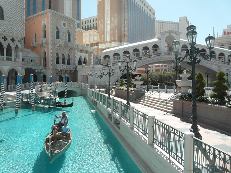Daneben das bombastische Venitian, wo man sich innen und außen wie in Venedig fühlt. Sogar Gondel fahren kann mit italenischem Gesang (für $80/Person).