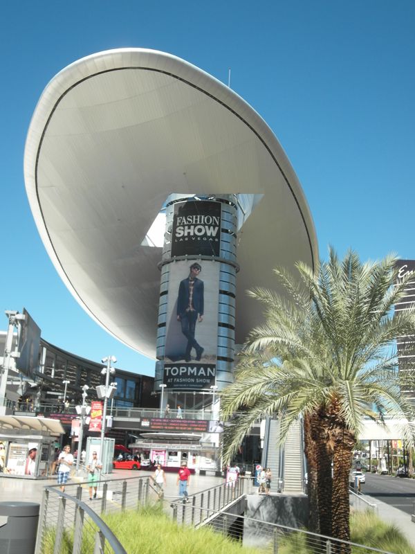 Weiter den Strip entlang die "Fashion Show", ein grosses Einkaufszentrum vor allem für Mode. Ein riesiges, freischwebend wirkendes Dach wirkt bei der vorherrschend trockenen Witterung in Las Vegas etwas deplatziert.