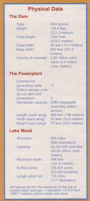 Entgegen weitläufiger Meinung versorgt der Staudamm Las Vegas nicht mit Elektrizität. Nur 5% der dort verbrauchten Energie stammt vom Hoover-Staudamm, der Rest aus fossilen und Atomkraftwerken in der Nähe.