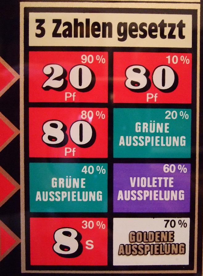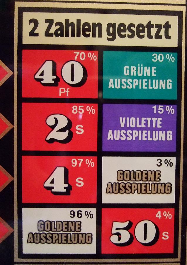 Von 3 DM sind lediglich 1,60 DM riskierbar, die jedoch nur zum Riskieren angeboten werden, wenn der Sonderspielezähler weniger als 10 oder mehr als 29 anzeigt.