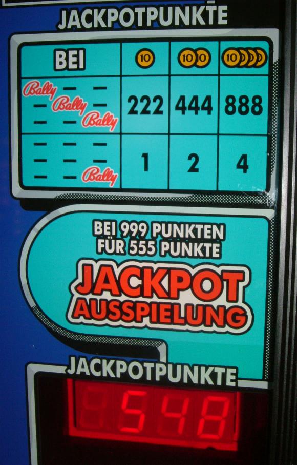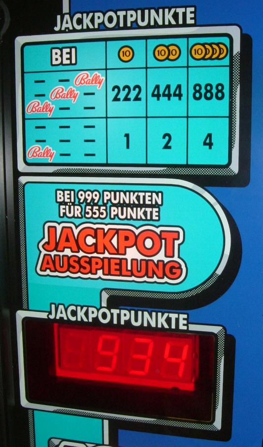 Jackpotpunkte gibt es wie angegeben. Bei Erreichen von 999 Punkten wird die Jackpotausspielung ausgelöst. Es werden dann 555 Punkte abgezogen und der andere Jackpotzähler wird auf 888 Punkte gesetzt, sofern dieser nicht bereits mehr Punkte hat.