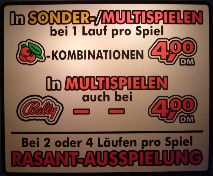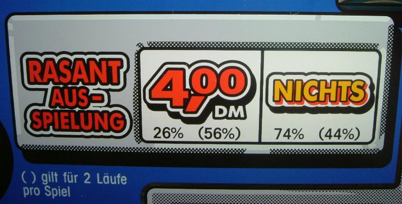 Würde ein gewonnener Geldbetrag bei 2 oder 4 Läufen pro Spiel zu einem Gesamtgewinn von mehr als 4 DM führen, so werden anstelle dieses Geldbetrags 3 Sonderspiele gegeben.