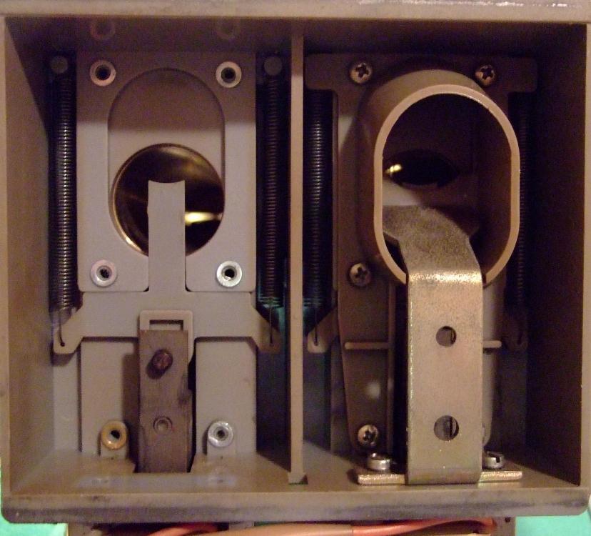 | In den NSM-Geräten wurden die abgebildeten mechanischen Münzprüfer verwendet. Die Typen können abweichend der Abbildungen sein. Der Grundaufbau ist jedoch gleich und das Prinzip ist auch auf andere Münzprüfer übertragbar. |