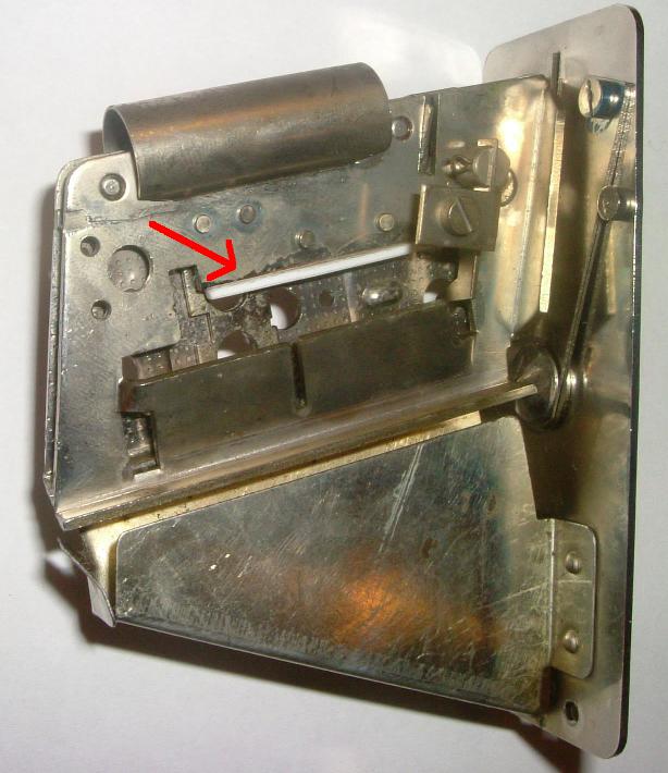 Zum Ausbau des Münzprüfers sind 4 Schrauben zu lösen (Bild 1 und Bild 2). Dann kann die gesamte Münzeinwurfblende von vorne abgezogen werden. Eine 5 cent Münze läuft nicht bis zum Ende durch, sondern kippt nach vorne weg (Bild 3) und kann dann durch Betätigen des Rückgabeknopfes wieder ausgeschieden werden. Da die 5 cent Münze einen etwas geringeren Umfang hat, muss die obere Führung entsprechend vergrößert werden. Ich habe in diesem Fall einfach einen schmalen Streifen von einem doppelseitigen Schaumstoffklebeband ausgeschnitten und dort angeklebt (Bild 4). Der Streifen darf gerade so gross sein, das nur die 5 cent Münze und keine kleinere Münze durchläuft. Nach dem Umbau werden aber auch weiterhin 10 Pfennig Münzen angenommen.